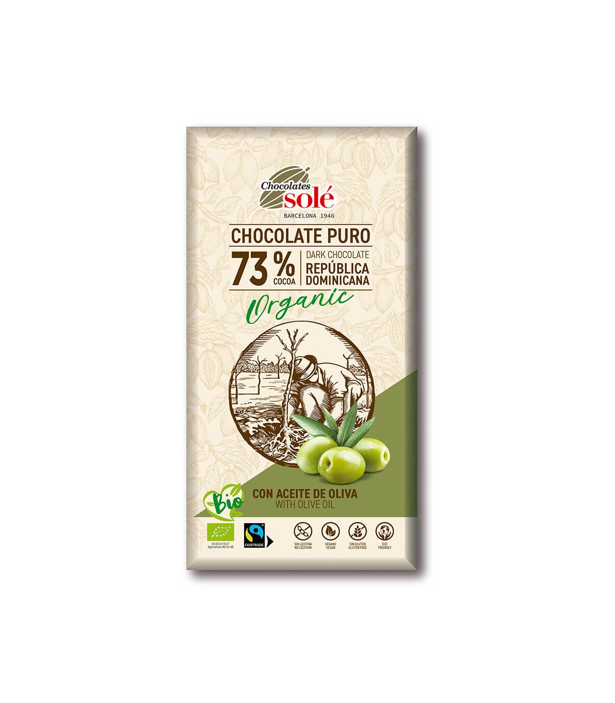 Chocolate Puro 73% Cacao con Aceite de Oliva 100g BIO