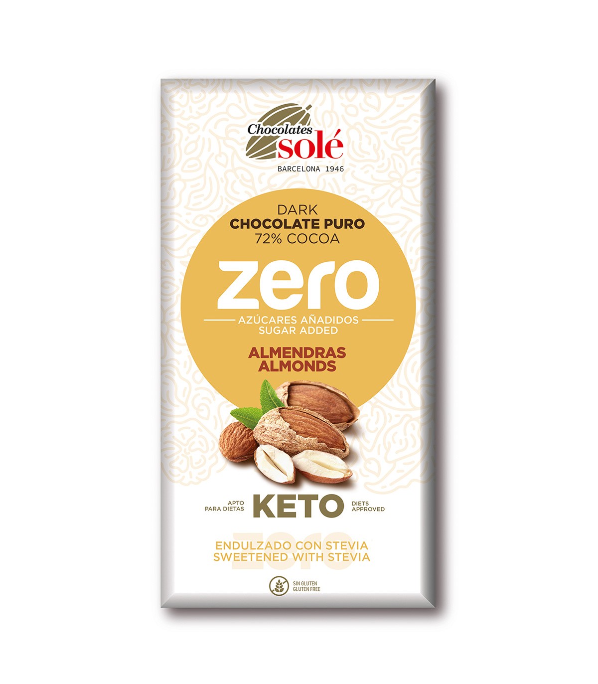 Chocolate Puro 72% Cacao con Almendras Keto Zero 100g