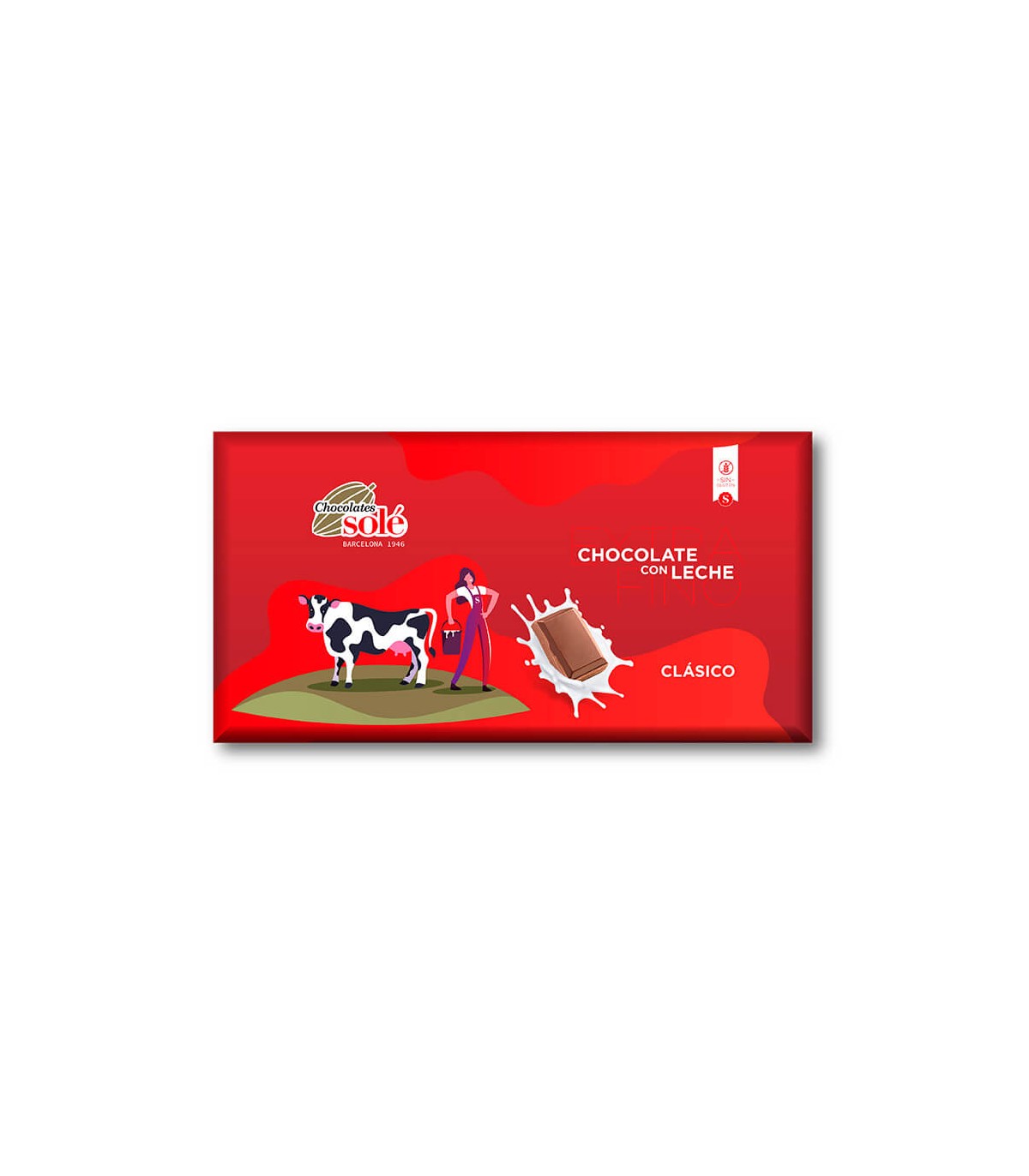 Chocolate con leche. 34% cacao. Apto para celíacos.