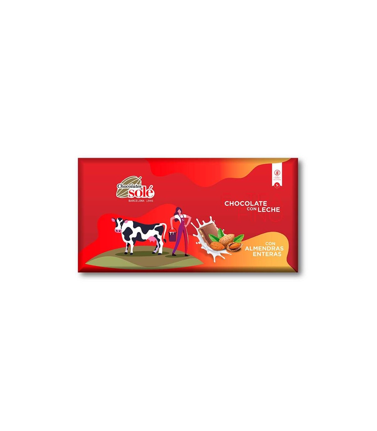 Chocolate con leche y almendras. Apto para celíacos.