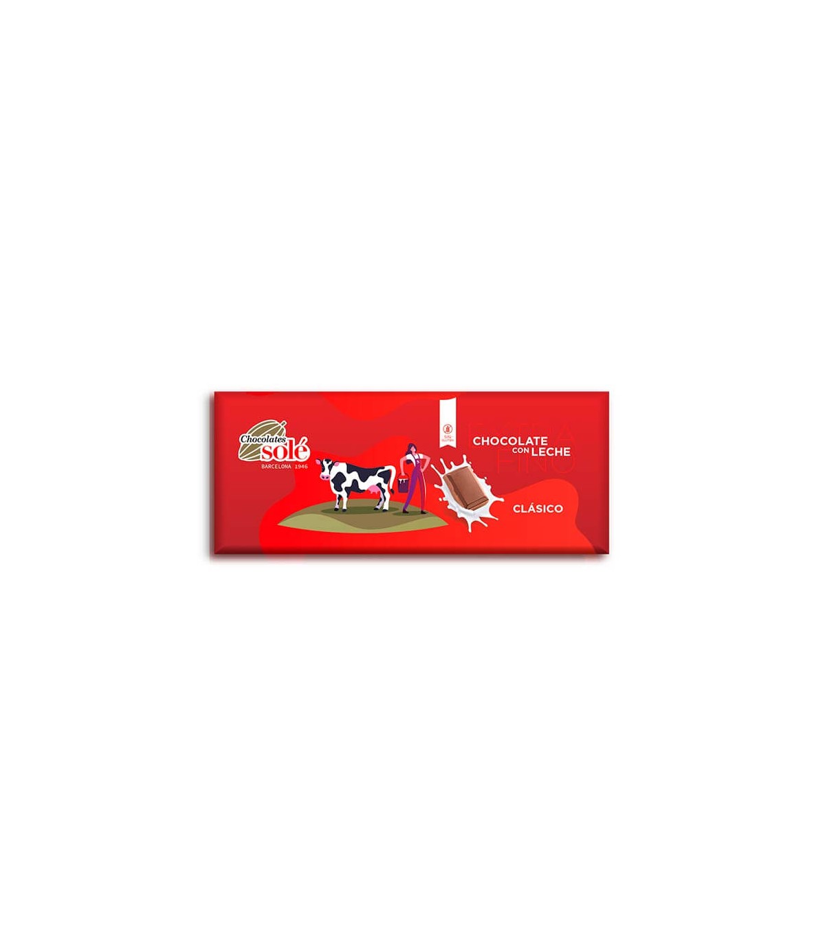 Chocolate con leche. 34% cacao. Apto para celíacos.